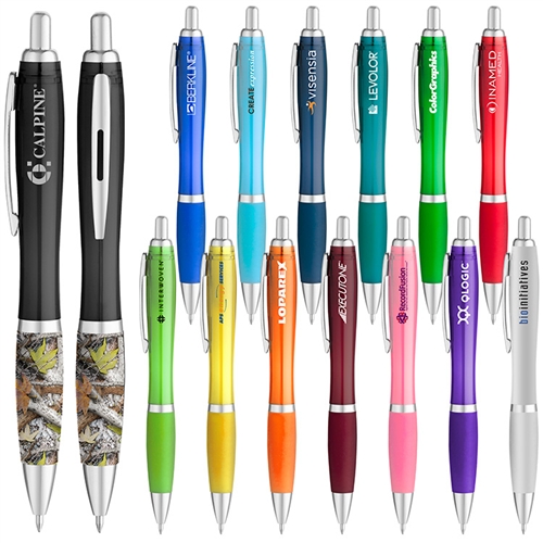 The bold color rubberized comfort grip and smooth flow gel ink of this Curvaceous Gel Pen will attract prospects everywhere you market! This bold writing instrument features a translucent color curvaceous barrel with shiny silver accents. This key item offers lots of bright colors and a beautiful silk screened imprint. An ideal giveaway for almost any corporate office as well as hospitals, universities, retail stores, nonprofits and more! Item size: 5-1/2" L x 9/16" diameter.