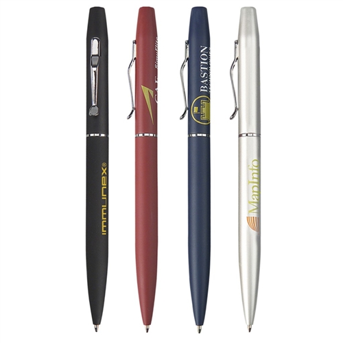 The Tahiti is a classic design twist action ballpoint pen with shining chrome, wavy clip and trims.