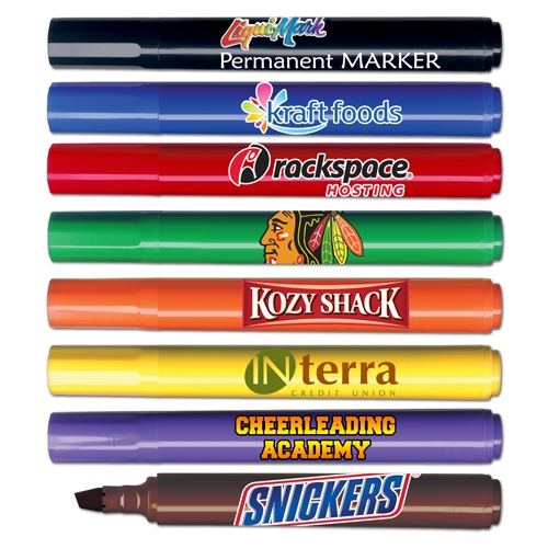 * USA Made * Permanent Ink Chisel Tip Markers are color fast, quick drying and won't fade. Contains the Liqui-Mark® unique patented Triplex Tip® that is ideal for marking things that are meant to last. They will permanently mark most surfaces in your office, home or school. They're also great for industrial use, but not intended for use as a laundry marker. Non-Toxic. Marker sets also available in vinyl pouch or heat sealed poly bag. Contact factory for details.