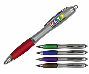 The Silhouette Satin Grip Pen has full color digital printing in an assortment of colors. Stylish click pen with contoured colored barrel. Thumb grips match barrel color.