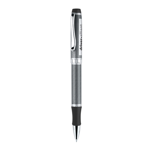 Gamma Satin Chrome Roller ball is a chrome pen. It has heavy weight brass construction. Unique grid pattern, ballpoint.