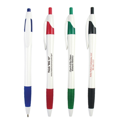 The Artistic pen is a click action pen. One of the most popular promotional pens. Chose either blue, red, green or black for matching grip and clicker.
