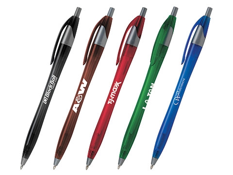 Clear choice from the popular Javalina® line. Translucent pen jewel tones team with silver tone trim. Guaranteed ultra-smooth writing cartridge in black or blue ink.