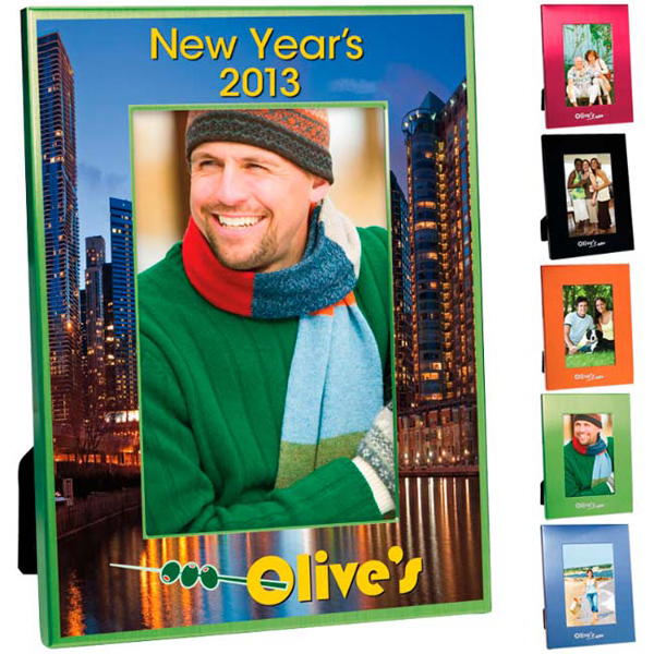 Here's a colorful take on our standard 4" x 6" aluminum frame! With an overall size of 6 1/8" W x 8 1/8" H x 7/16" D, this exclusive version of our brushed aluminum frame holds a 4" x 6" photo and features a velvet back. Show off your photos in style by displaying your corporate logo or personalized name amidst a dazzling rainbow of color! This elegant product makes a perfect gift for clients or employees. Order now and watch your brand awareness take off!