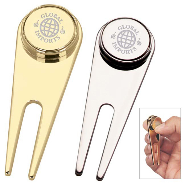 This giveaway item is sure to "fix" up your marketing campaign! Enjoy your full day on the golf course when you are equipped with the Magnetic Divot Repair Tool with Ball Marker! The 1" x 2 7/8" x 1/4" divot repair tool features a removable magnetic ball marker to make your golf experience complete. The product gives you the opportunity to imprint a personal message, company name or logo.