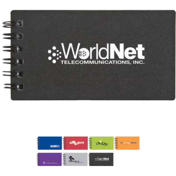 Never let them forget a number and they'll never forget your brand! Our pocket-sized spiral-bound mini business card holder and jotter features a clear business card pocket on the bold translucent color cover, plus 40 lined sheets of note paper. Imprint options are deboss, hot foil stamping and silkscreen. It's a perfect promo piece for lots of businesses. Carry it around, keep your logo visible, and hand it out at your next trade show!