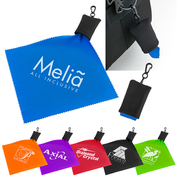 Galaxy Stuff-It. Single-sided Galaxy tech cleaning cloth with soft micro-fibers for keeping phones and screens smudge-free. Microfiber material helps safely maintain and clean lenses, screens, optics, and more. The 7" x 7" cloth stores in stuff bag with attached clip. Antimicrobial coating on cloth.