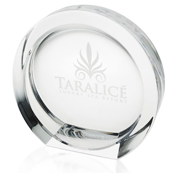 Achievers in the technology sector will swell with pride with their name on the High Tech Award! This large trophy measures 6-3/4" W x 6-1/2" H x 2" D and is a very popular 24% lead crystal piece by Italian designer Mario Cioni. An impressive event award, this decorative item features an exquisite deep-etched imprint of your message on the crystal-clear surface. An opaque or translucent BritePix imprint is available; please specify when ordering.