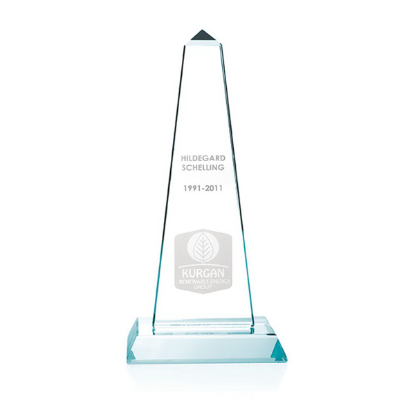 Recognize achievement at any level with the small Mammoth Tower! This slender trophy is a lovely centerpiece for your next corporate banquet. With measurements of 4" W x 9" H x 3" D, this sleek glass award brilliantly displays the deep-etched imprint of your recipient's message and your logo for their honor and your brand visibility. Recognize increasing sales with this regal award. Order yours today and they will always remember you!