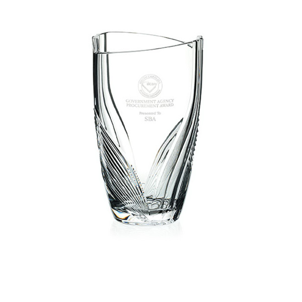 Decorative lines and unique cuts create the classic 24% lead Marsala crystal vase! At an overall product size of 6-1/8" diameter x 10-1/8" H, this dazzling award is artfully styled and cut to provide a sparkling "center of attention" to your logo and personalization. Free 24-hour service. Great for employee gifts and achievement recognition. With its visual interest, this vase will have an impact on any recipient. Order now and reward your stars!