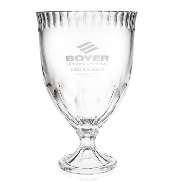 The Odyssey Award is an epic trophy for epic deeds! Concave carvings on the flared base and upper and lower areas of the bowl add to the elegance of this award. Handcrafted by Italian designer Mario Cioni, this is an ideal award for lifetime achievements in business and the arts. At 9" diameter x 14" H, the exquisite cup beautifully displays your deep-etched personalization and logo both for your recipient's honor and your company's brand exposure!