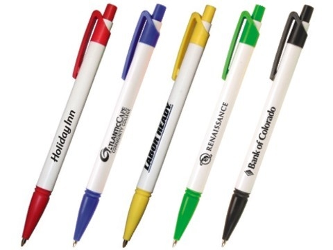 Crisp white barrel with bright accents. Strong and solid retractable action. An exceptional pen at a great price.