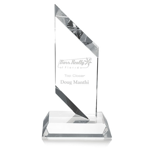 The generous size and unusual shape of the Sparta Award symbolizes major corporate milestones! Measuring 4-1/2" W x 8" H x 3" D, this gleaming trophy beautifully displays your recipient's name and your company logo for their honor and your brand exposure. The award provides ample etch area. It's a perfect prize for an anniversary or teamwork award. Order yours now and give your distinguished recipients a memento they will keep forever!