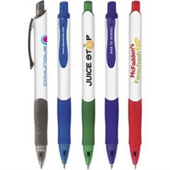 Clients will always be in good "spirits" when your campaign includes the Spirit pen! Featuring a white barrel with grip section, this click-action pen with clip features colorful accent trim colors, a plunger-action mechanism and medium point with black or blue ink. Black ink is provided unless specified. Measuring 5 5/8" L x 7/16" D, this giveaway is a wonderful way to promote your brand at a great price. Have your logo or message imprinted now!