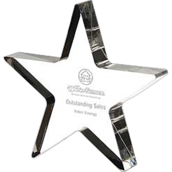 All the superstars in your company would love to earn the Superstar Award! Perfect for all your rising stars. An opaque or translucent BritePix imprint is available; please specify when ordering. With a product size of 6" W x 5-3/4" H x 1" D, this star-shaped trophy beautifully shows off your logo and message. Make a statement about the excellence of your winners by giving them something that will instill them with pride. Order yours today!