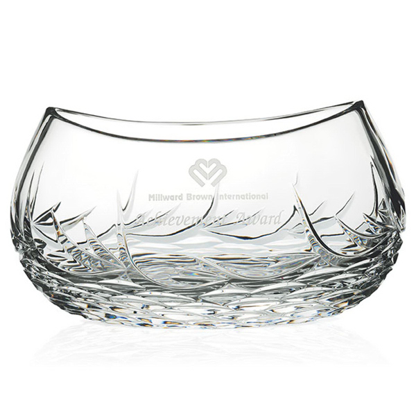Make sure those "whispers" of achievement turn into applause when you bestow the Whisper-Cut Oval Bowl on your deserving recipient! Wisps of clear cuts are placed in 24% lead crystal to create this exclusive piece. At 10" W x 5-1/2" H x 6" D, this intricately carved award provides a beautiful etched imprint of your logo and personalization. This timeless decorative item makes an excellent employee award in various corporate settings.