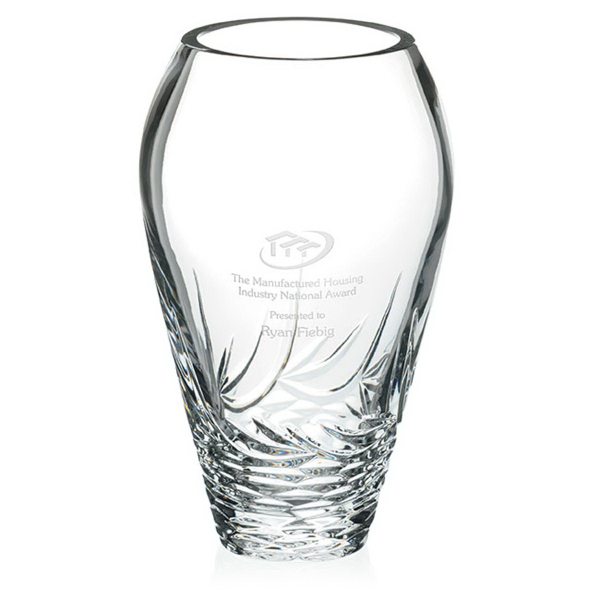 Wisps of clear cuts are placed in 24% lead crystal to create this exclusive piece! Watch your recipient swell with pride after receiving our Whisper-Cut Vase. With an overall product size of 5-1/2" W x 9" H x 5-1/2" D, this intricately carved award provides a beautiful etched imprint of your logo and personalization. Great for continuity programs. This timeless decorative item also makes an excellent employee award in various corporate settings!