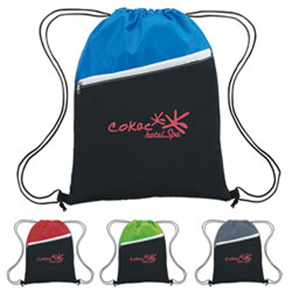 Exclusive. Atchinson (R). An Edge Above. 210 Denier Polyester. Zipper Sport Pack. This simple drawstring backpack is perfect for anyone on the go. The front zippered pocket is ideal for securing your valuable. While the top opens wide to store as much or as little as you need. Large front zippered pocket. Drawstring closure. Product Size: 13 3/4" w x 17 3/4" h x 1/8" d.