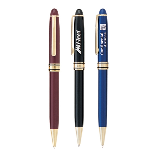 The Esperanze Pen is a twist, action ballpoint. Aluminum metallic color barrel with gold or matte silver accents.