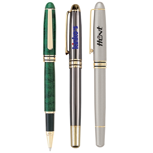 Danish Roller Ball Pens are a cap off, roller ball pens.They are made of heavy brass construction. The pen has a gold clip and accents. Great gifting pen.